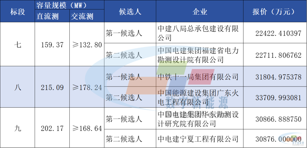 10月14日,寧夏電力國(guó)能紅寺堡新能源有限公司“寧湘直流”配套紅寺堡150萬(wàn)千瓦新能源基地項(xiàng)目EPC工程(七標(biāo)段、八標(biāo)段、九標(biāo)段)公開招標(biāo)中標(biāo)候選人公示,中建八局總承包建設(shè)有限公司、中鐵十一局集團(tuán)有限公司、中國(guó)電建(5.780, -0.08, -1.37%)集團(tuán)華東勘測(cè)設(shè)計(jì)研究院有限公司分別位列三個(gè)標(biāo)段第一候選人。
